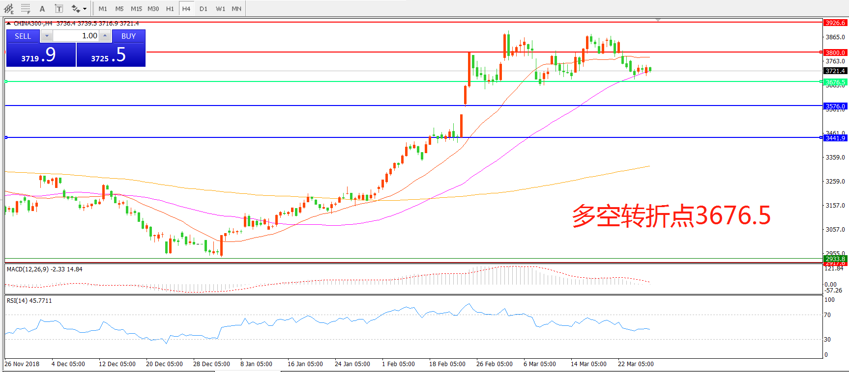 多空转折点:3676.50