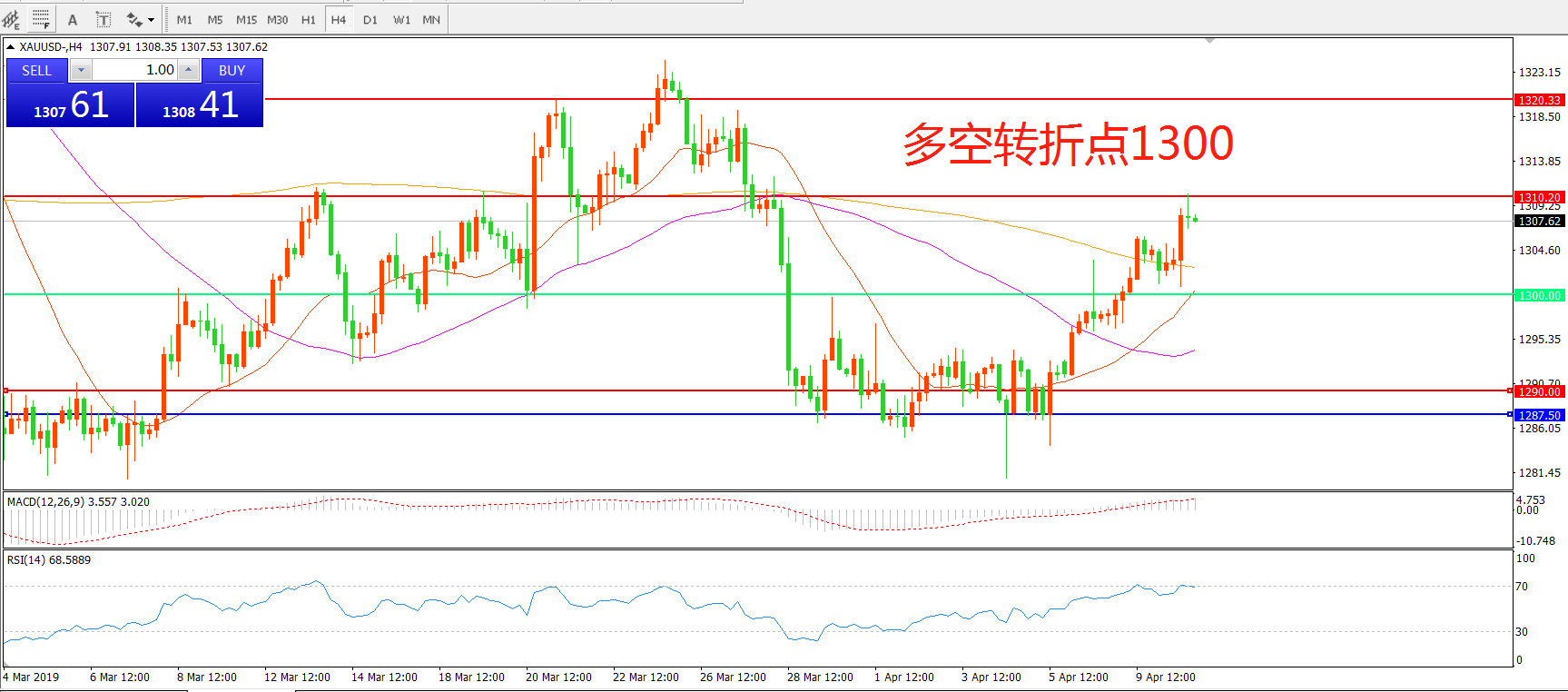 交易策略:在1300.00之上看涨,目标1310.00 1320.00