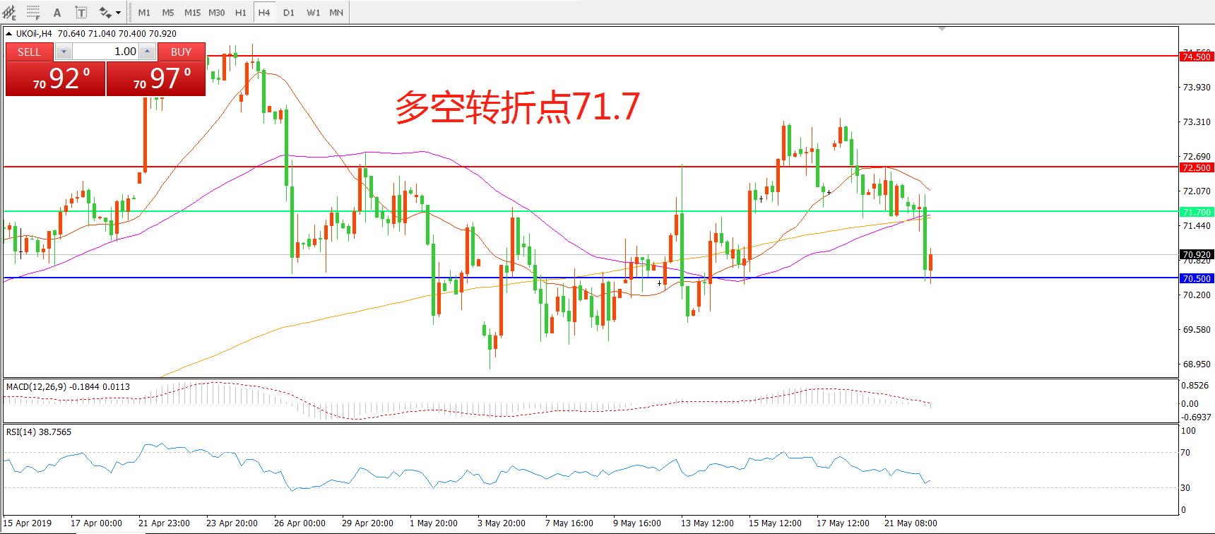 多空转折点:71.70