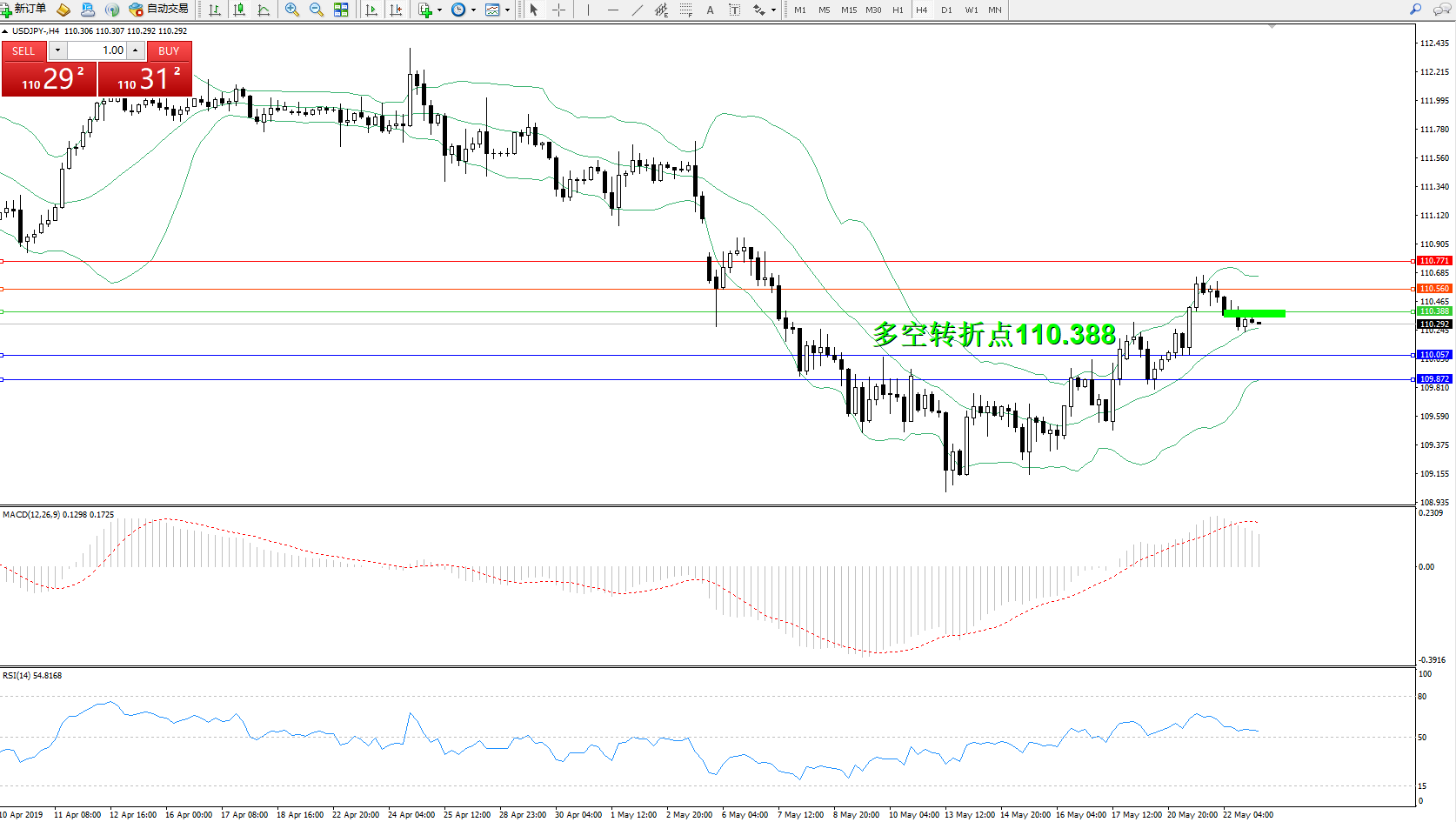 备选策略:110.388上方看涨,目标110.560、110.771