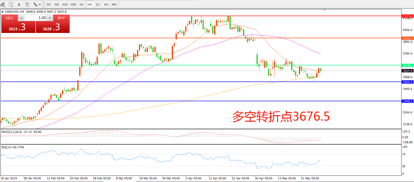 多空转折点:3676.50