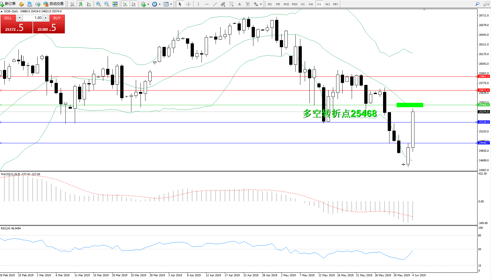 交易策略:25468下方看跌,目标25228、24940
