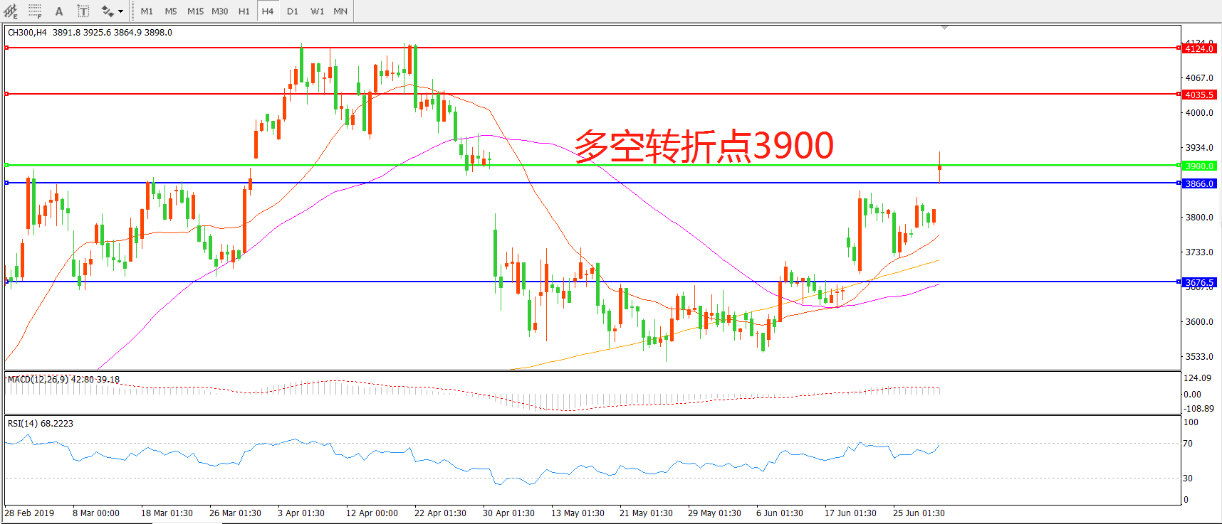 多空转折点:3900.00