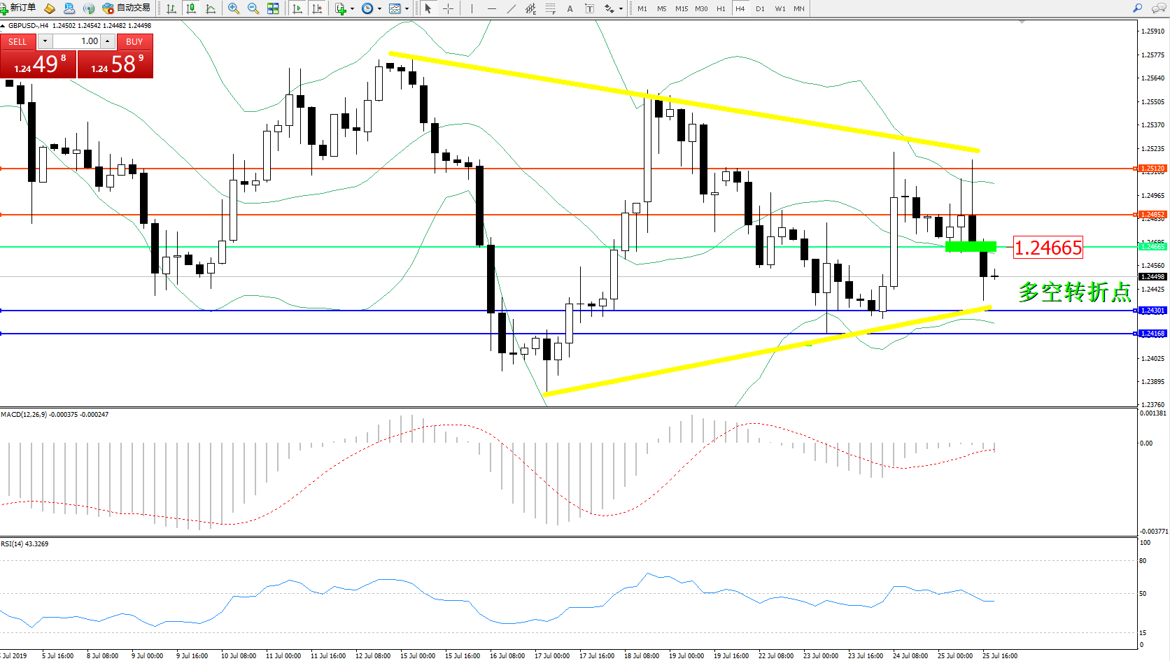 英镑美元GBPUSD ——4小时K线图显示:
