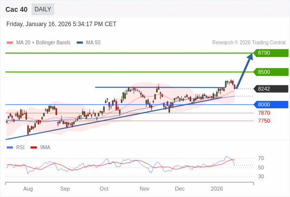 Cac 40 短线: 上升趋势。