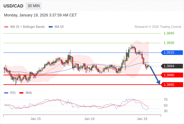在 1.3915 之下,看跌,目标价位为 1.3880 ,然后为 1.3865 。