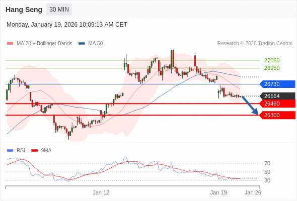 恒生指数 当日内: 目标位为26300。