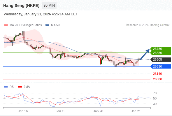 在 26330 之上,看涨,目标价位为 26680 ,然后为 26780 。