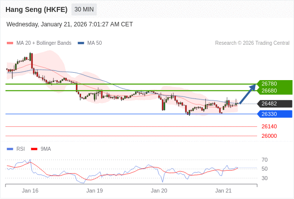 在 26330 之上,看涨,目标价位为 26680 ,然后为 26780 。