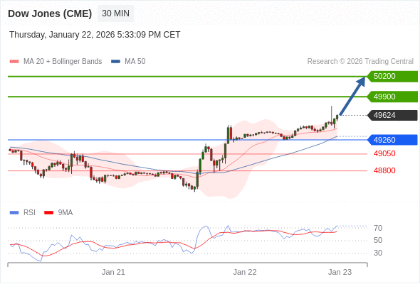 在 49260 之上,看涨,目标价位为 49900 ,然后为 50200 。