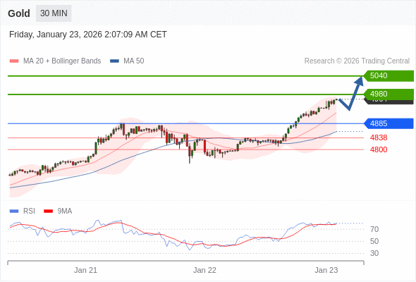 在 4885 之上,看涨,目标价位为 4980 ,然后为 5040 。
