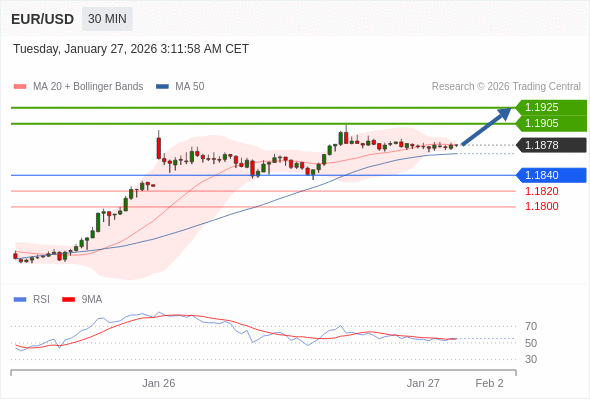 在 1.1840 之上,看涨,目标价位为 1.1905 ,然后为 1.1925 。