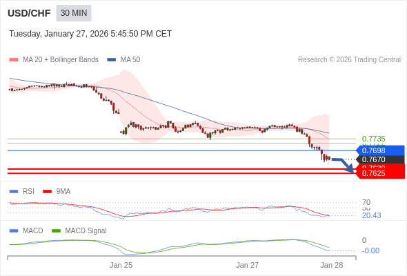 交易策略: 看跌,在 0.7698 之下。