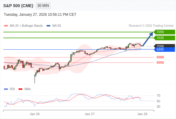 在 6995 之上,看涨,目标价位为 7035 ,然后为 7055 。