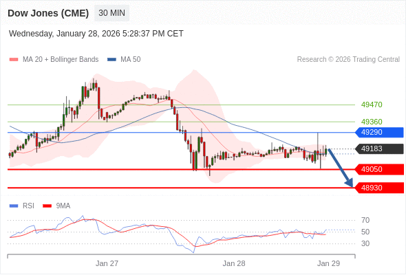 在 49290 之下,看跌,目标价位为 49050 ,然后为 48930 。