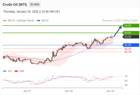在 62.55 之上,看涨,目标价位为 64.05 ,然后为 64.95 。