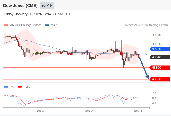 在 49240 之下,看跌,目标价位为 48800 ,然后为 48530 。