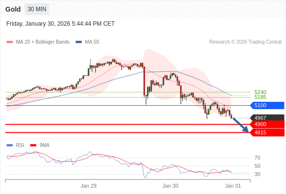 在 5100 之下,看跌,目标价位为 4900 ,然后为 4815 。