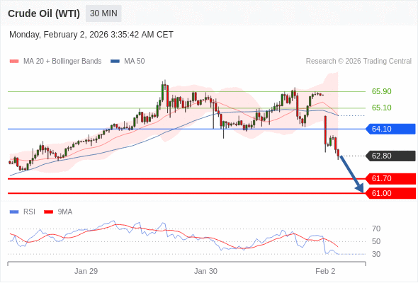 在 64.10 之下,看跌,目标价位为 61.70 ,然后为 61.00 。