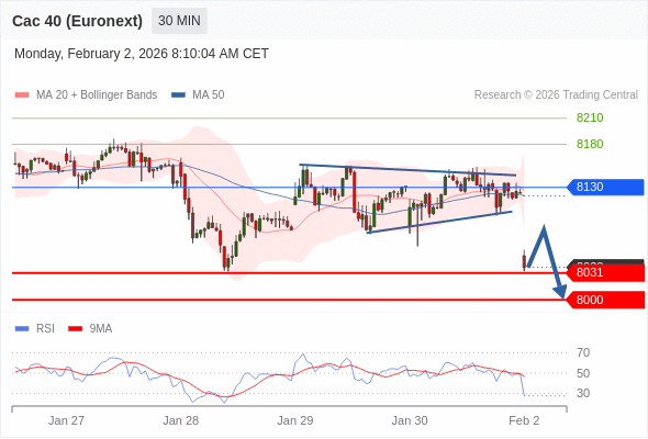 在 8130 之下,看跌,目标价位为 8031 ,然后为 8000 。