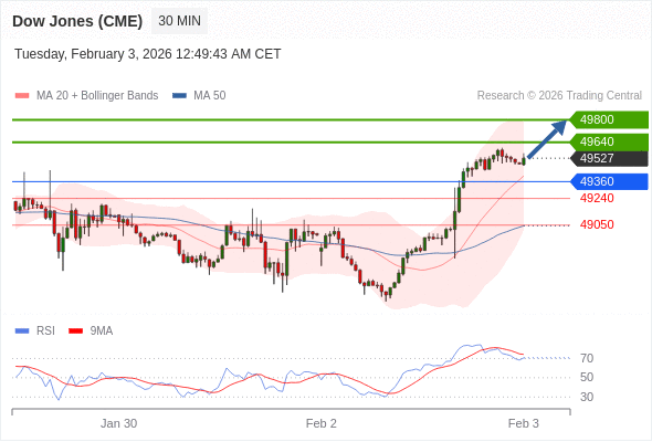 在 49360 之上,看涨,目标价位为 49640 ,然后为 49800 。