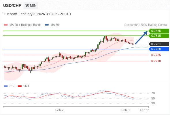 在 0.7760 之上,看涨,目标价位为 0.7815 ,然后为 0.7835 。
