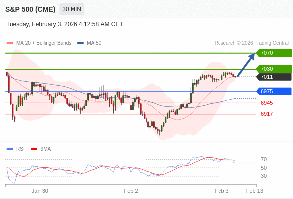 在 6975 之上,看涨,目标价位为 7030 ,然后为 7070 。