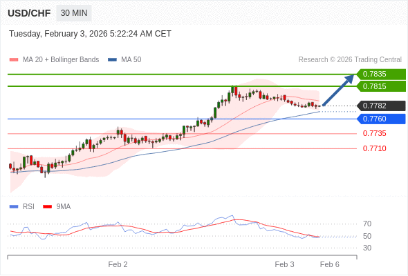 在 0.7760 之上,看涨,目标价位为 0.7815 ,然后为 0.7835 。