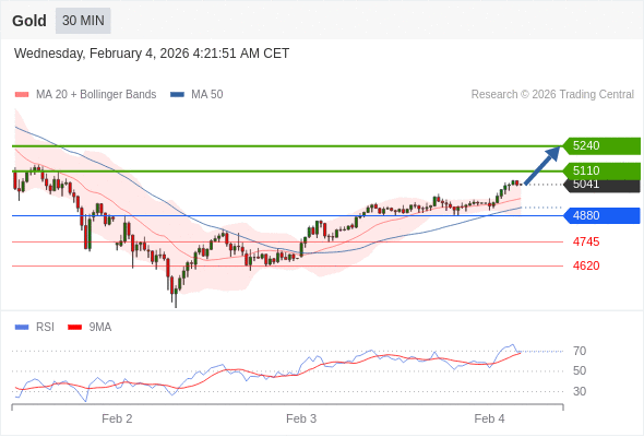 在 4880 之上,看涨,目标价位为 5110 ,然后为 5240 。