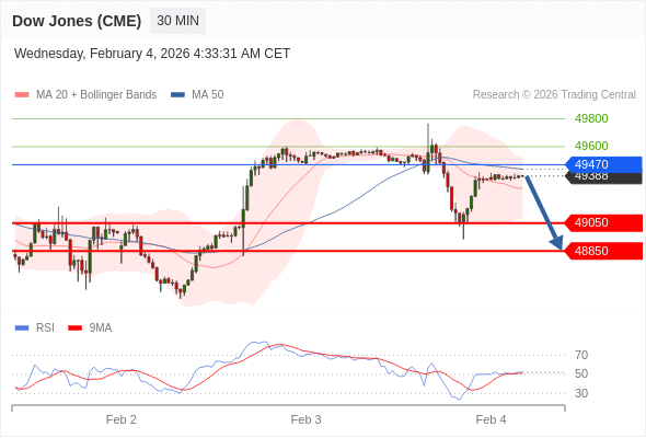 在 49470 之下,看跌,目标价位为 49050 ,然后为 48850 。