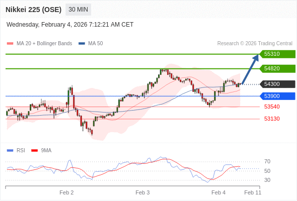 在 53900 之上,看涨,目标价位为 54820 ,然后为 55310 。