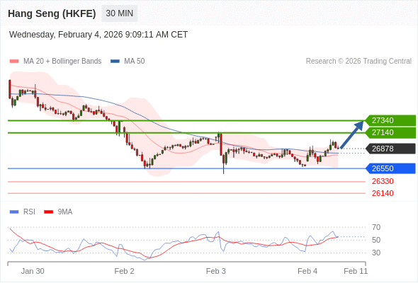 香港恒生指数期货 当日内: 目标位为27340。