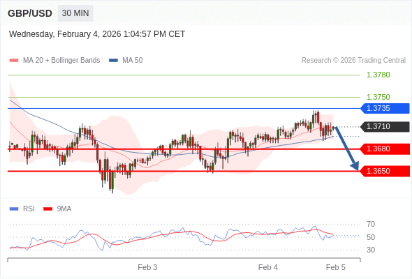 在 1.3735 之下,看跌,目标价位为 1.3680 ,然后为 1.3650 。
