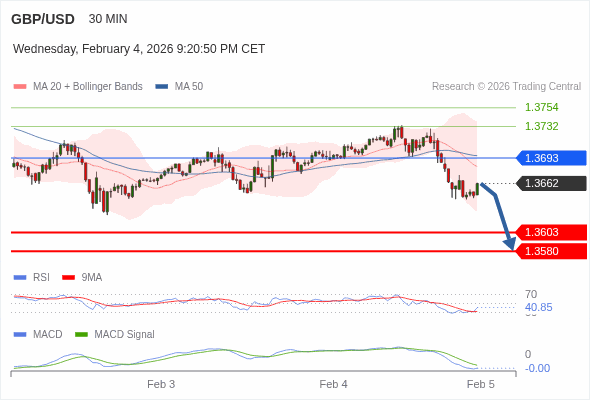 英镑/美元 当日内 : 看跌,在 1.3693 之下。
