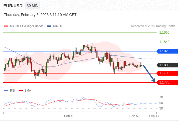 交易策略: 在 1.1825 之下,看跌,目标价位为 1.1790 ,然后为 1.1775 。