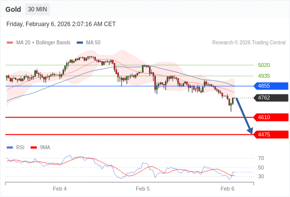 在 4855 之下,看跌,目标价位为 4610 ,然后为 4475 。