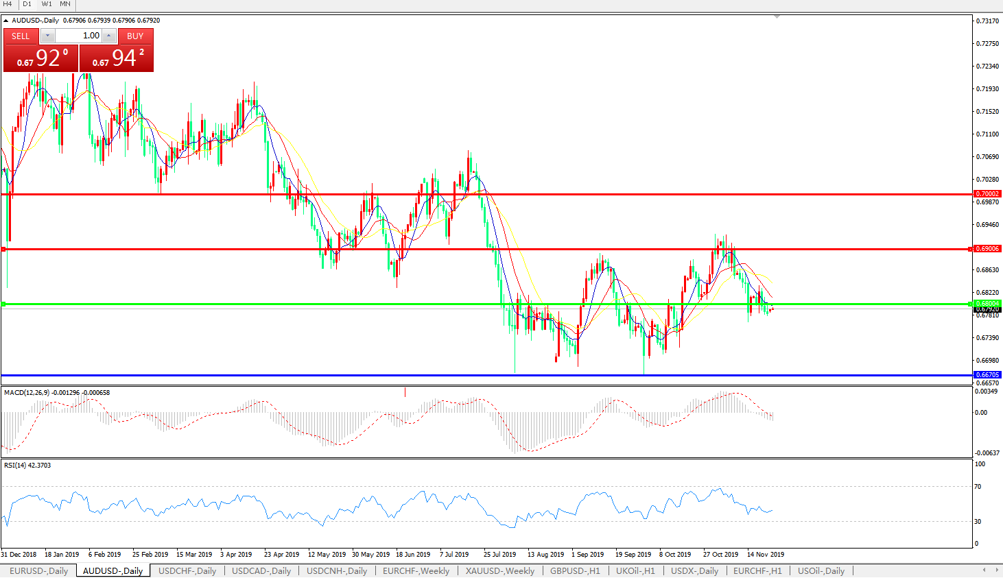 澳美0.68关口持续整理,短期汇价料将继续走弱