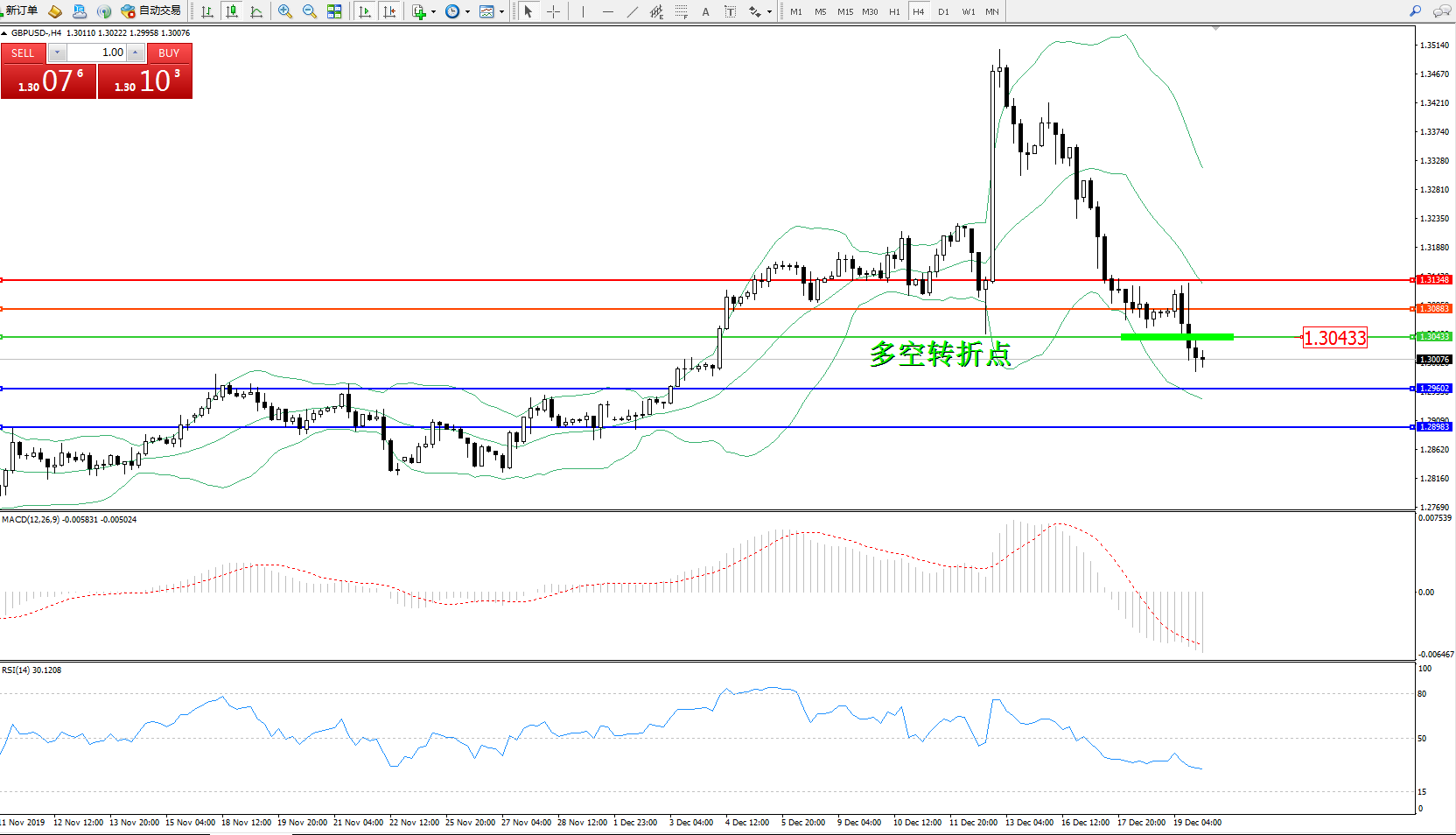 交易策略:1.30433下方看跌,目标1.296021.28963