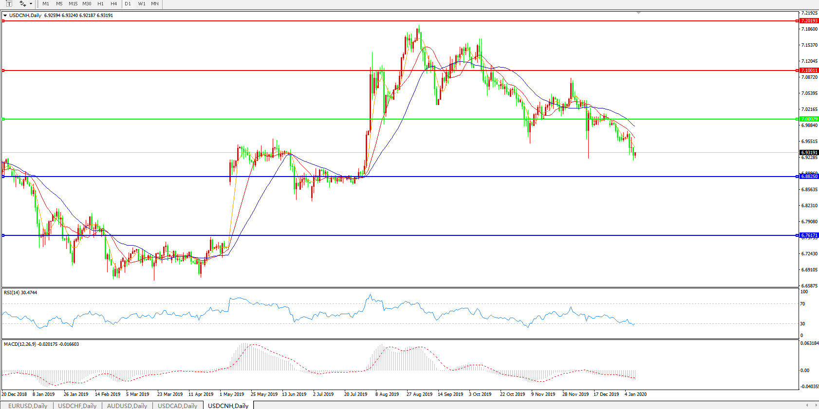美元兑人民币USDCNH    日线图: