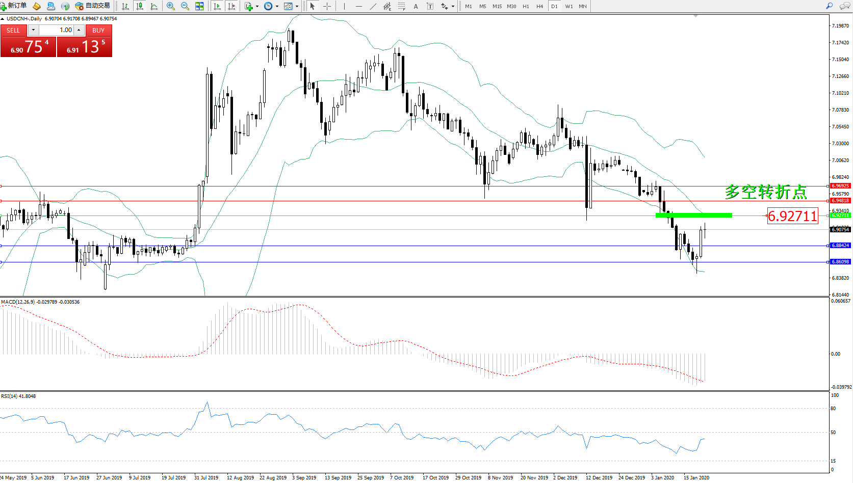 交易策略:6.92711下方看跌,目标6.684246.86098