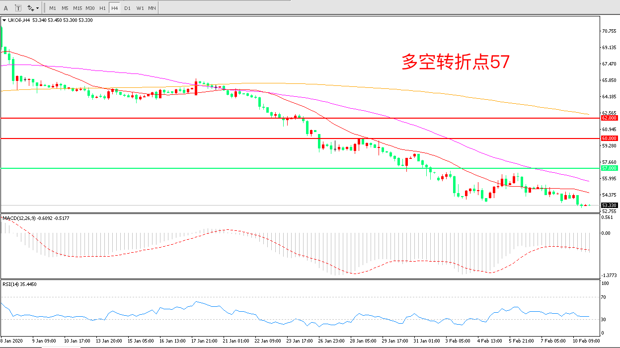 交易策略:在57.00之下看跌,目标55.00 52.00