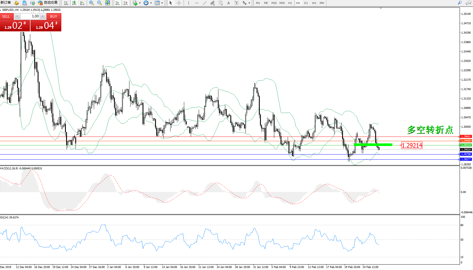 交易策略:1.29214下方看跌,目标1.28798、1.28577