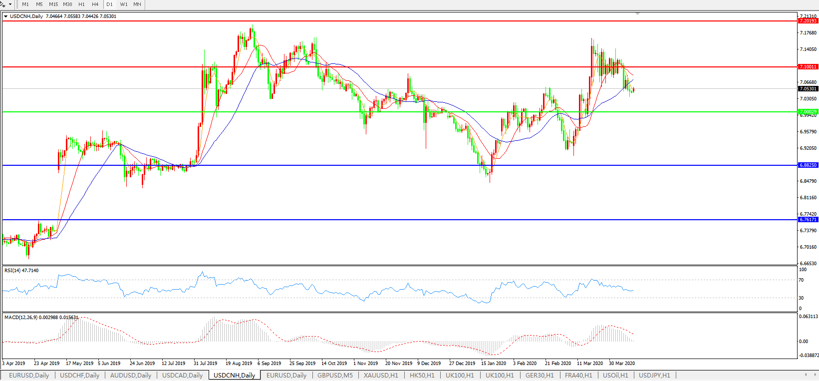 美元兑人民币USDCNH    日线图: