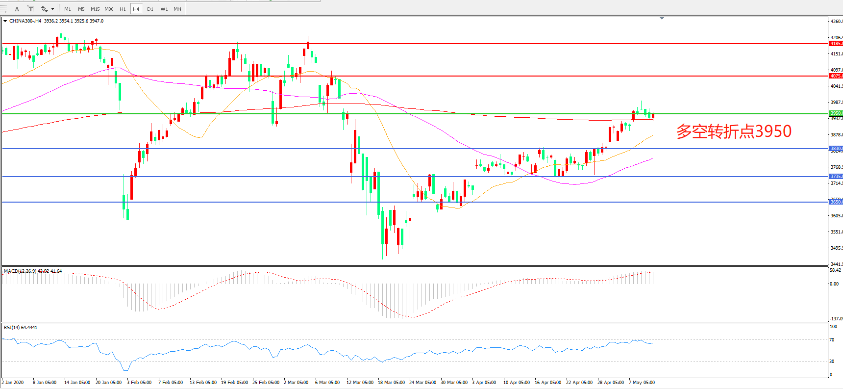 4小时图看,沪深300延续高位震荡,波幅不大,日内虽有回落,但始终站在200均线之上, MACD红柱增加,RSI指标走平,日内延续上行概率较大。