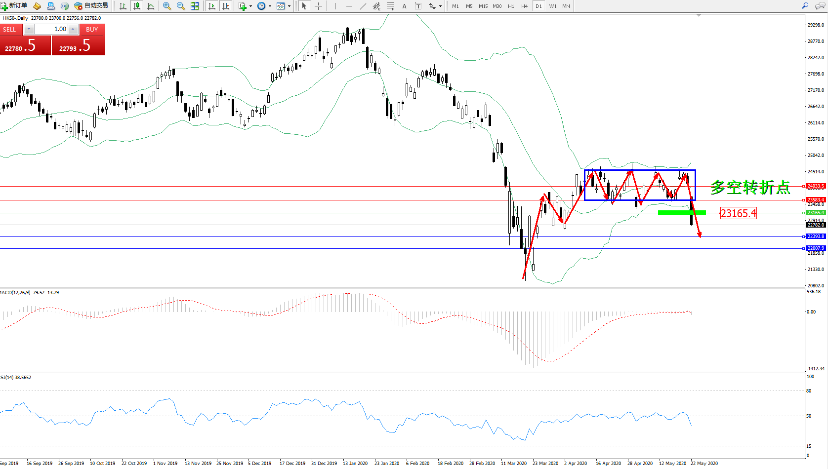 香港恒生指数522日(周五)收盘下跌1349.89点,跌幅5.56%,报22930.14点;港股市场主要股指均现单边下跌行情,恒指大跌5.56%重挫1350点,失守23000点大关,并创下4月以来新低。香港本地股领衔大跌,太古地产下挫超10%,恒指国指成份股无一上涨,半数跌超5%以上。今日大市成交额放大至1805.46亿港元,南下资金逆势净流入56.05亿港元。香港经历反修例风波和新冠疫情的双重冲击,经济民生已受到严重拖累,上季GDP下滑8.9%,创下历史最低,3月失业率升至4.2%。唯有筑牢国家安全的堤坝,恢复香港社会的稳定,才是民生再出发的基础,这是社会共识,更是民之所盼、民心所归。全国人大涉港议案释放强烈信号:严惩反中乱港,斩断黑手!