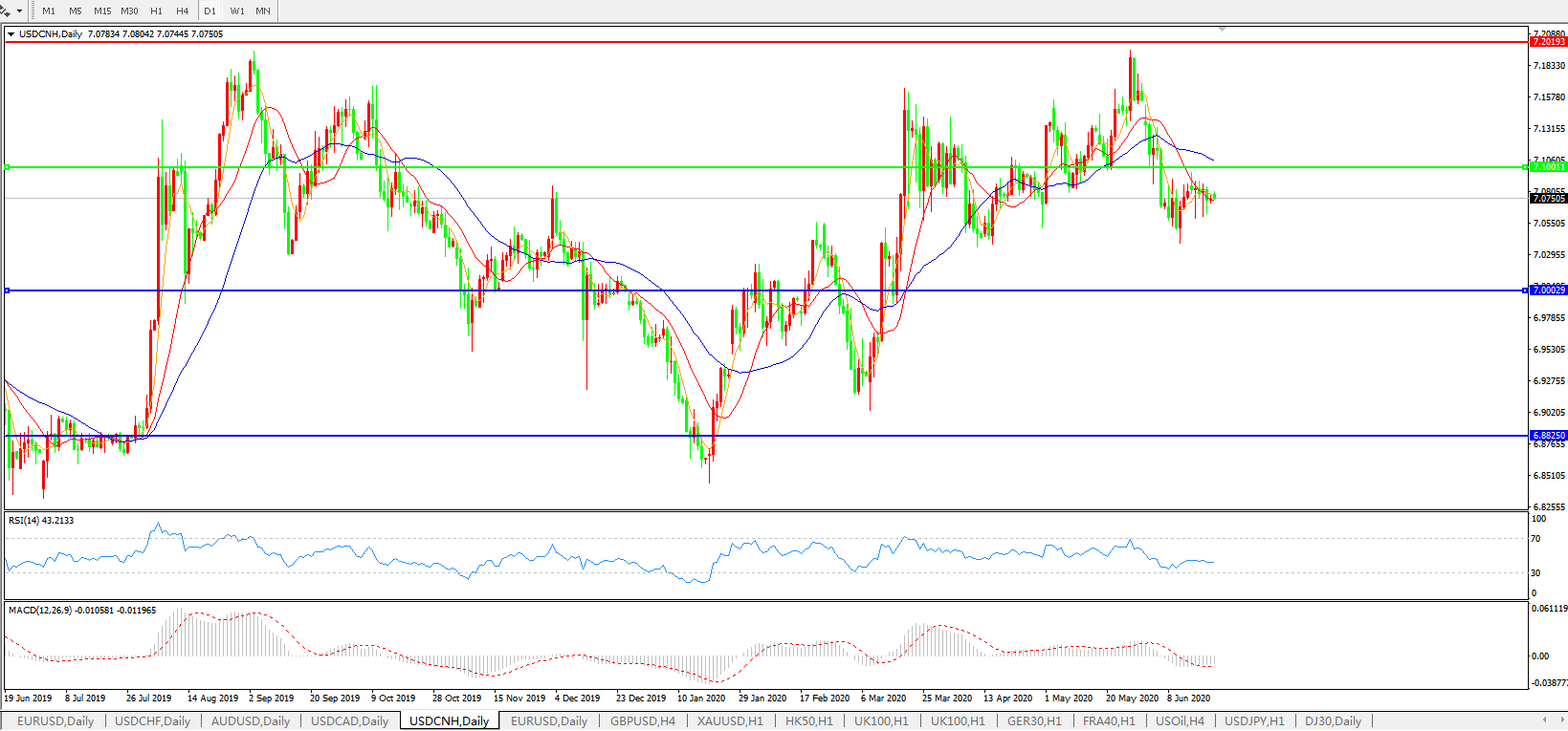 交易策略: 在7.1000之下,看跌,目标价位为7.0000,然后为6.8820。