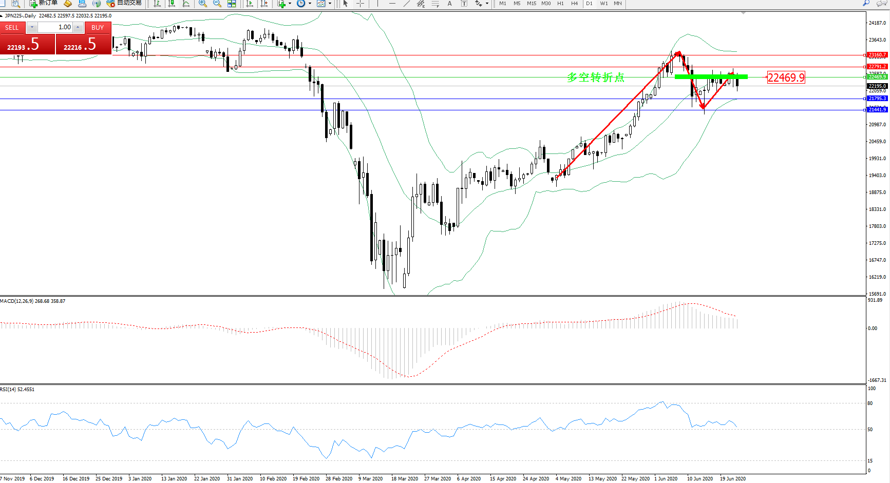 日经225指数624日(周三)收盘下跌33.05点,跌幅0.15%,报22516.00点。日本央行表示:日本经济受到新冠病毒影响的压力,但显示出了一些触底迹象。一位委员认为确保企业融资市场的稳定至关重要。当前的政策框架是灵活的,可应对经济发展情况的复杂变化。日本央行的政策正在产生预期的影响。疫情对全球经济增长的负面影响是长期的,日本的经济也难以避免这种影响。日本央行或多或少引入了必要的抗疫工具。经济复苏的延迟可能会破坏市场稳定,并可能损害金融体系。很难预测通货膨胀是否能在可预见的未来接近日本央行2%的目标。一位委员认为,需要密切留意政策的影响。如有必要采取额外政策措施,则必须快速反应。随着大范围经济领域受到冲击,必须防范日本重返通缩的风险。央行已提出应对疫情的充分计划,需要仔细评估政策影响。日本央行必须在当前政策框架下大胆使用所有可用工具,以保护企业、就业和稳定市场。