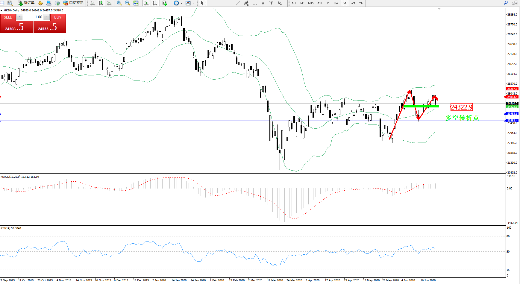 香港恒生指数624日(周三)收盘下跌125.76点,跌幅0.50%,报24781.58点;港股三大指数呈高开低走行情,恒指早盘曾一度收复25000点大关,临近尾盘跌幅扩大,国指跌0.57%9936点。盘面上,生物医药B类股再次爆发,康希诺生物飙涨超15%,信达生物、康方生物均创历史新高;腾讯高开低走,收跌1.33%;有消息称黄光裕已经出狱,国美系大涨,国美零售涨超17%,国美金融科技大涨超47%A股中关村、*ST美讯和ST金泰涨停。北京商报称国美创始人黄光裕已于近日出狱,国美官方将于近日通过公告说明具体情况,还称这一消息是在623日晚的国美集团高层会议中透露的。最新消息显示,北京监狱管理局表示不清楚此事;国美高层也称公司内部目前尚未通报上述消息。