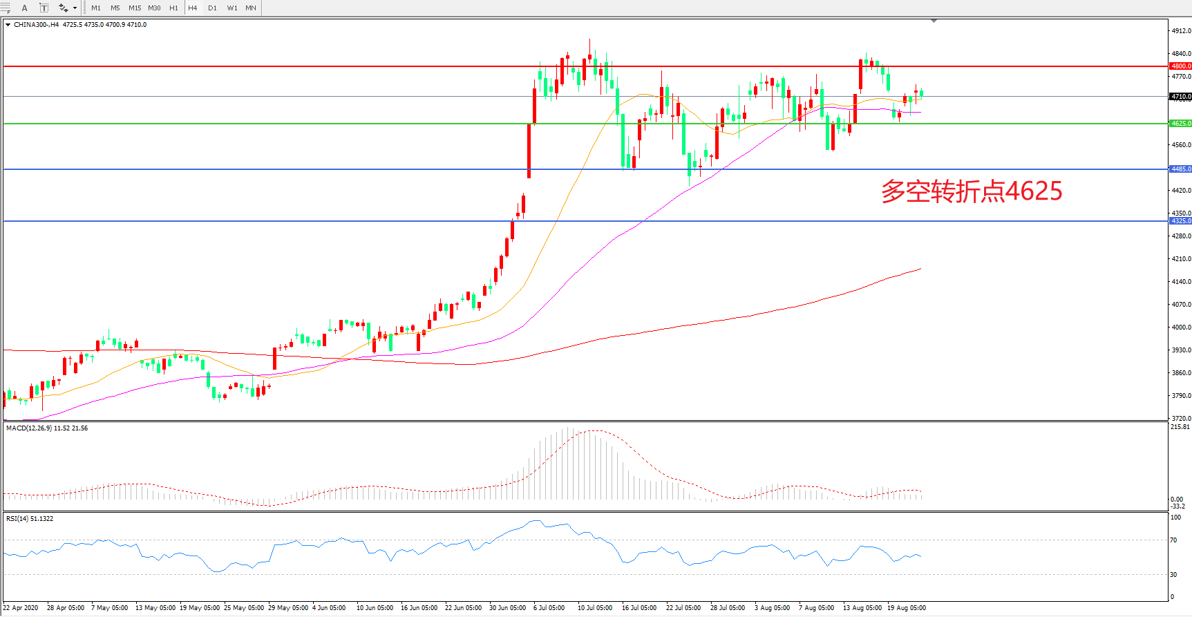 多空转折点:4625.00