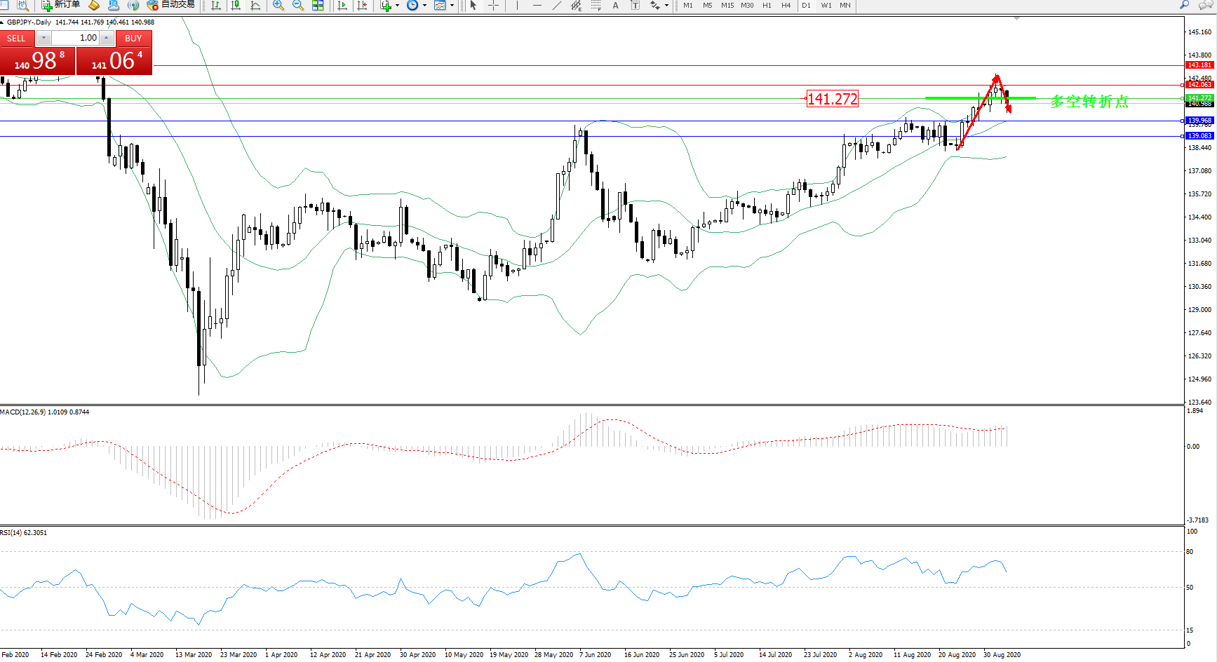 交易策略:141.272下方看跌,目标139.968、139.083
